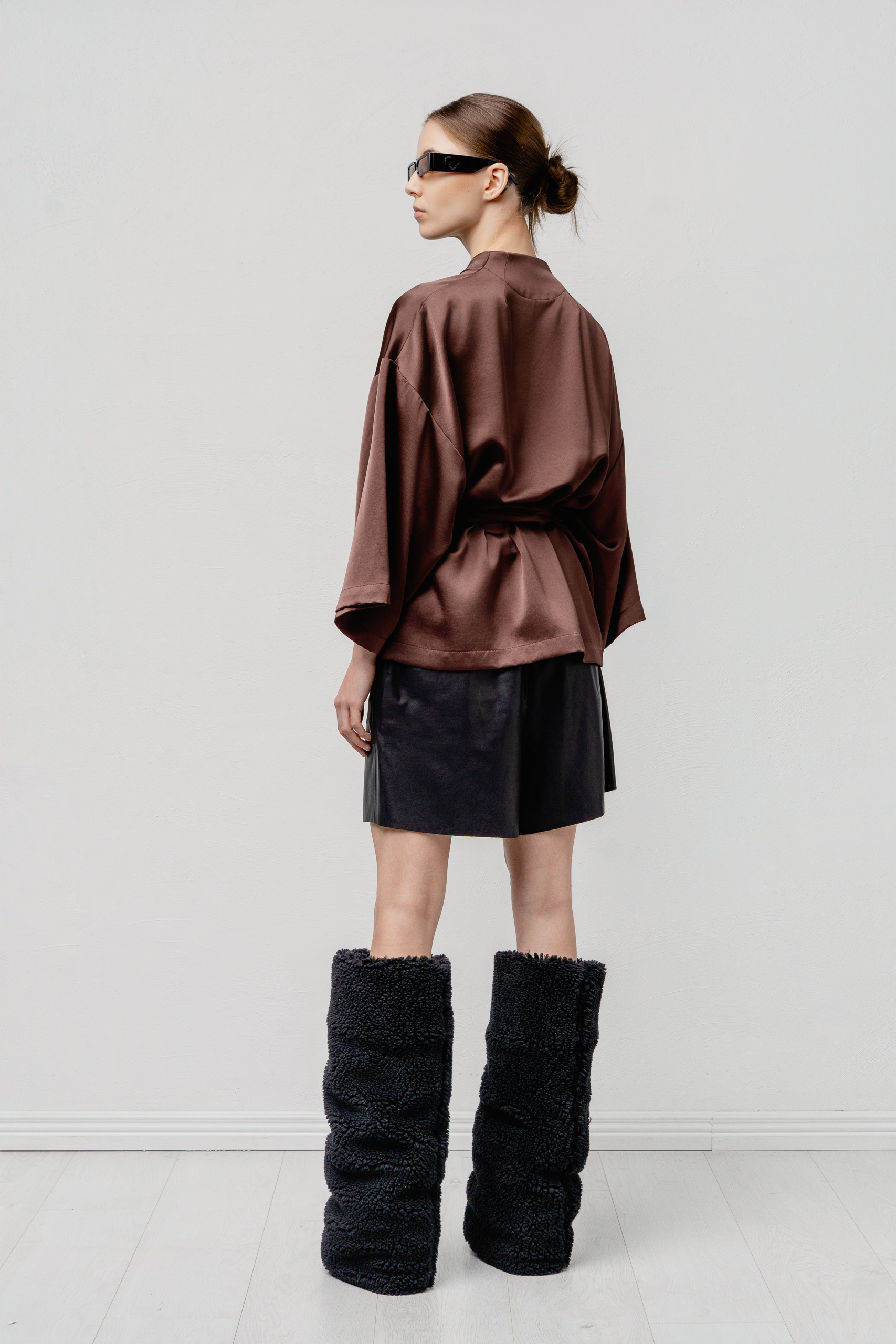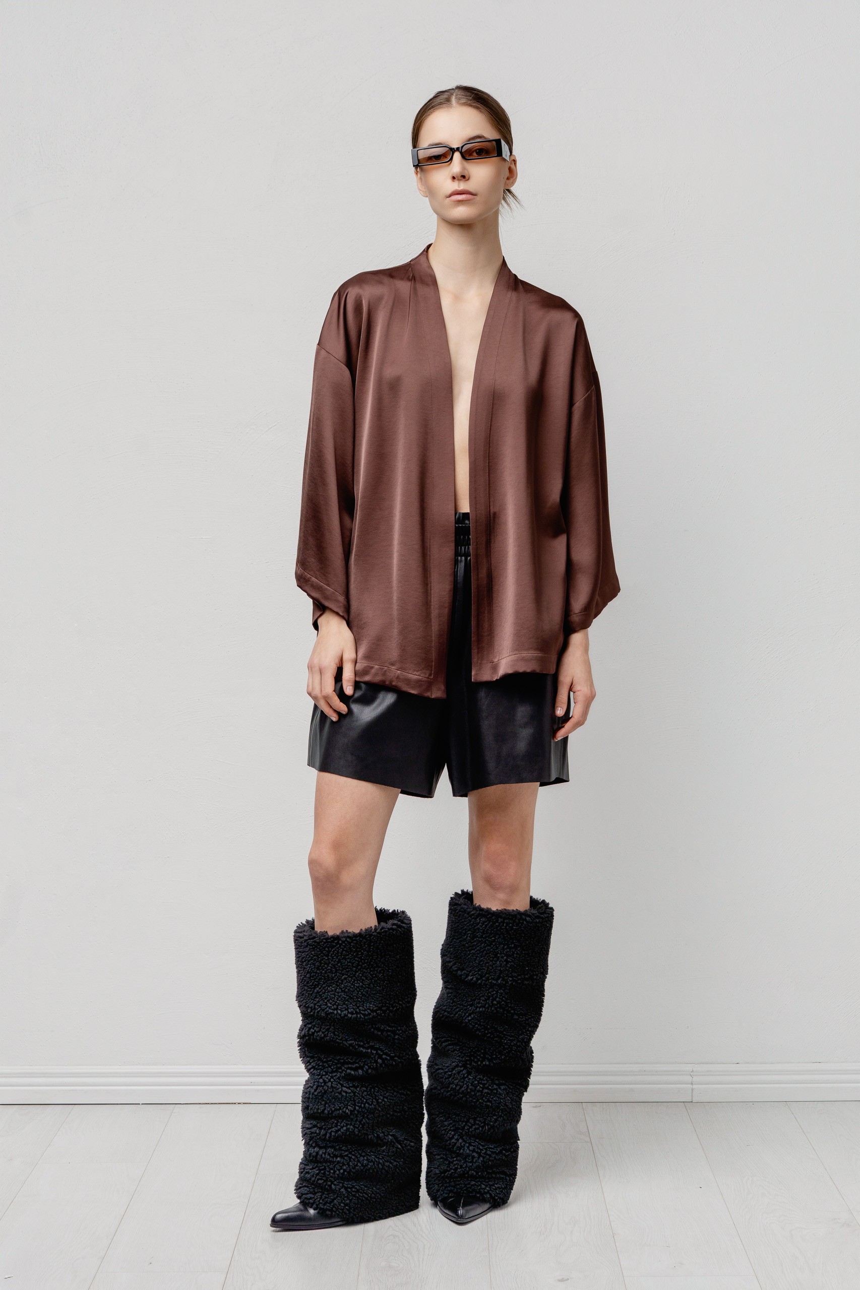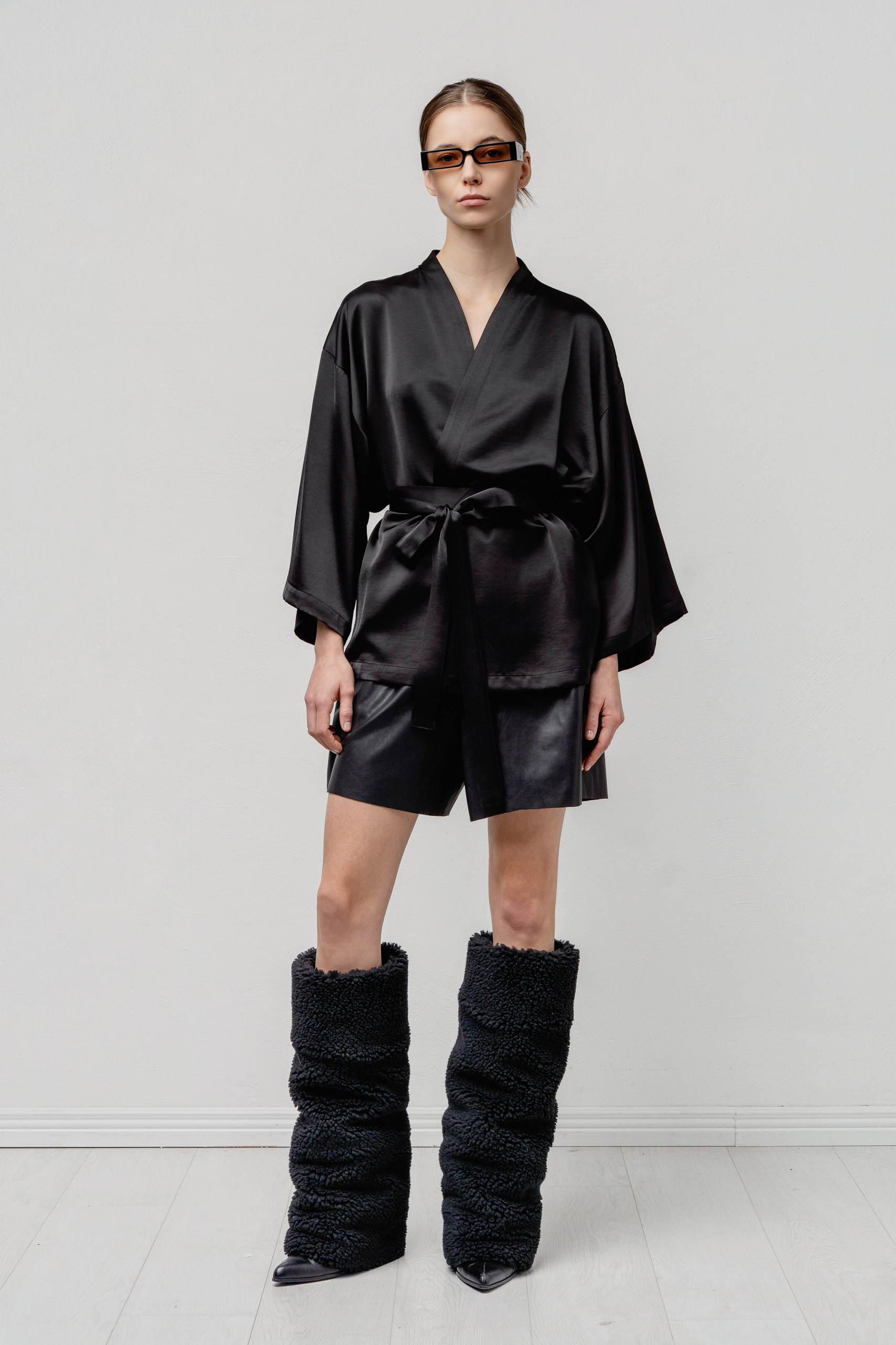 YOKO kimono on pehmest viskooskangast lühike jakk, millel on laiad efektsed varrukad ja kaasas pikk vöö ehk et jakki saad kanda nii vööga kui ilma. Kimonot saad ideaalselt kanda nii ohtustel üritustel kontsadega kui votta külalisi vastu koduses miljöös. Kimono sobib ühtmoodi hästi nii pükste kui seelikuga.