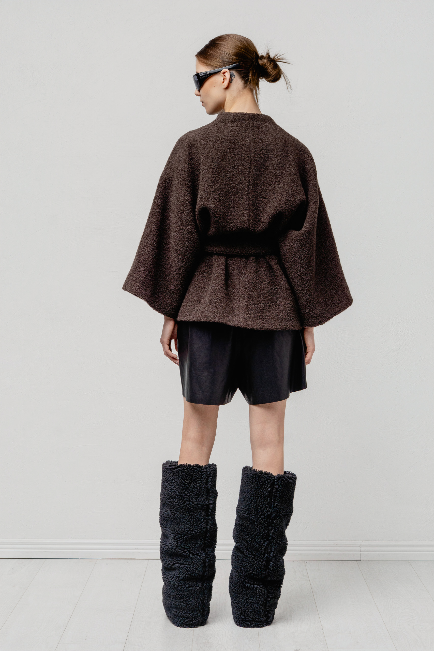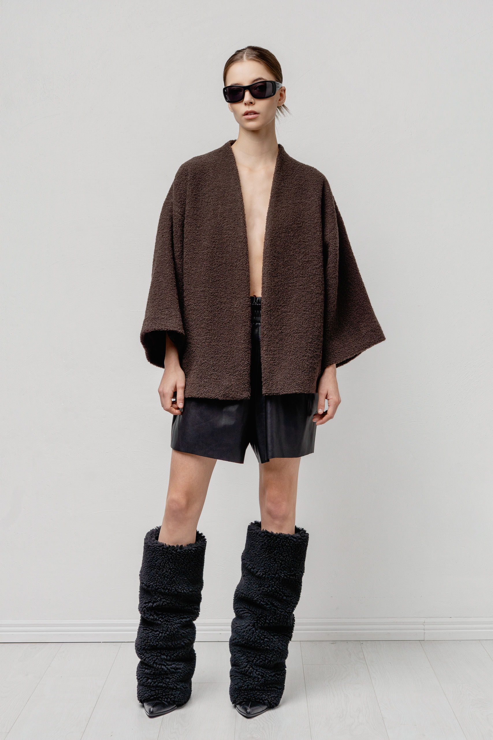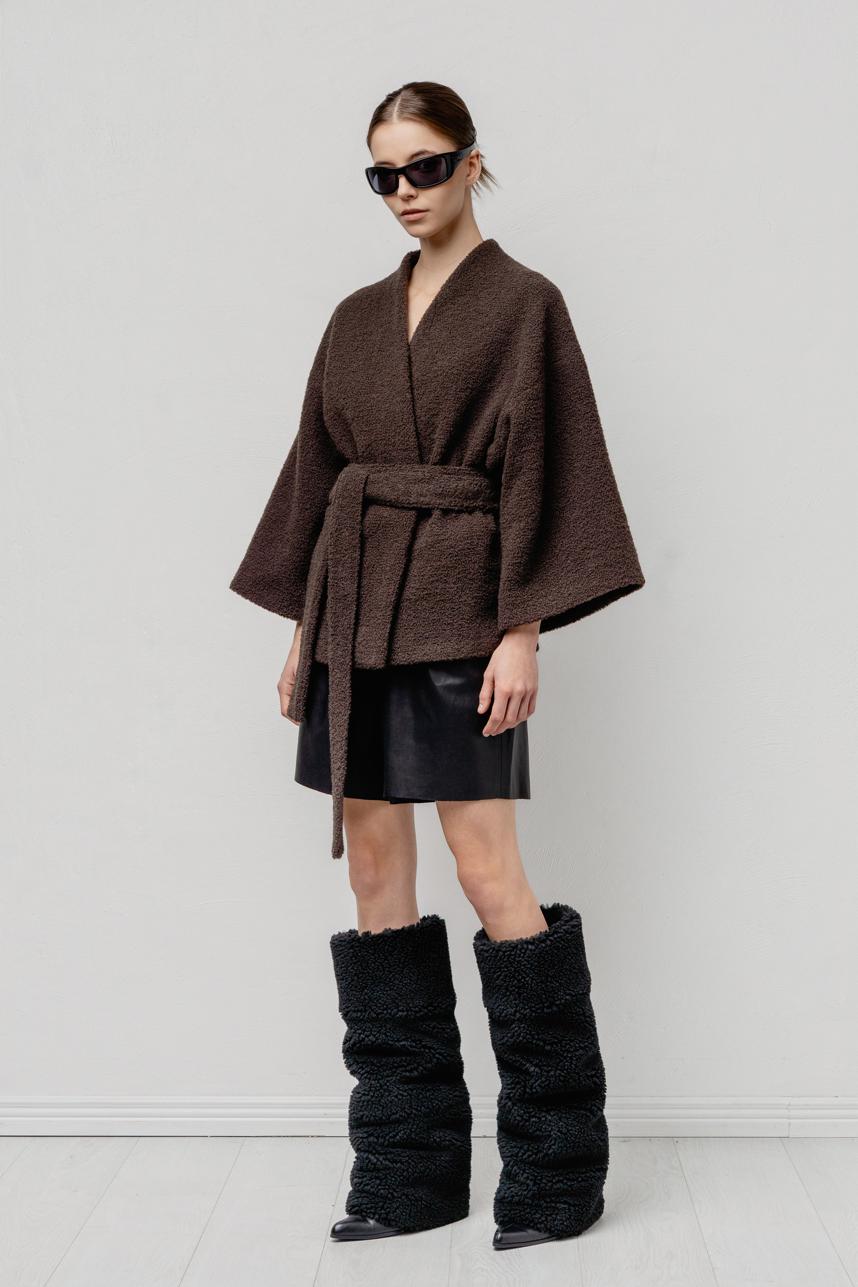 YOKO villane kimono on pehmest villasest kangast lühike jakk, millel on efektsed laiad varrukad ja kaasas pikk vöö ehk et saad kanda nii vööga kui ilma. Lühike YOKO kimono sobib kandmiseks nii pidulikult kontsadega kui igapäevaselt tenniste ja saabastega, sobib nii laiade pükste kui kitsa seelikuga.