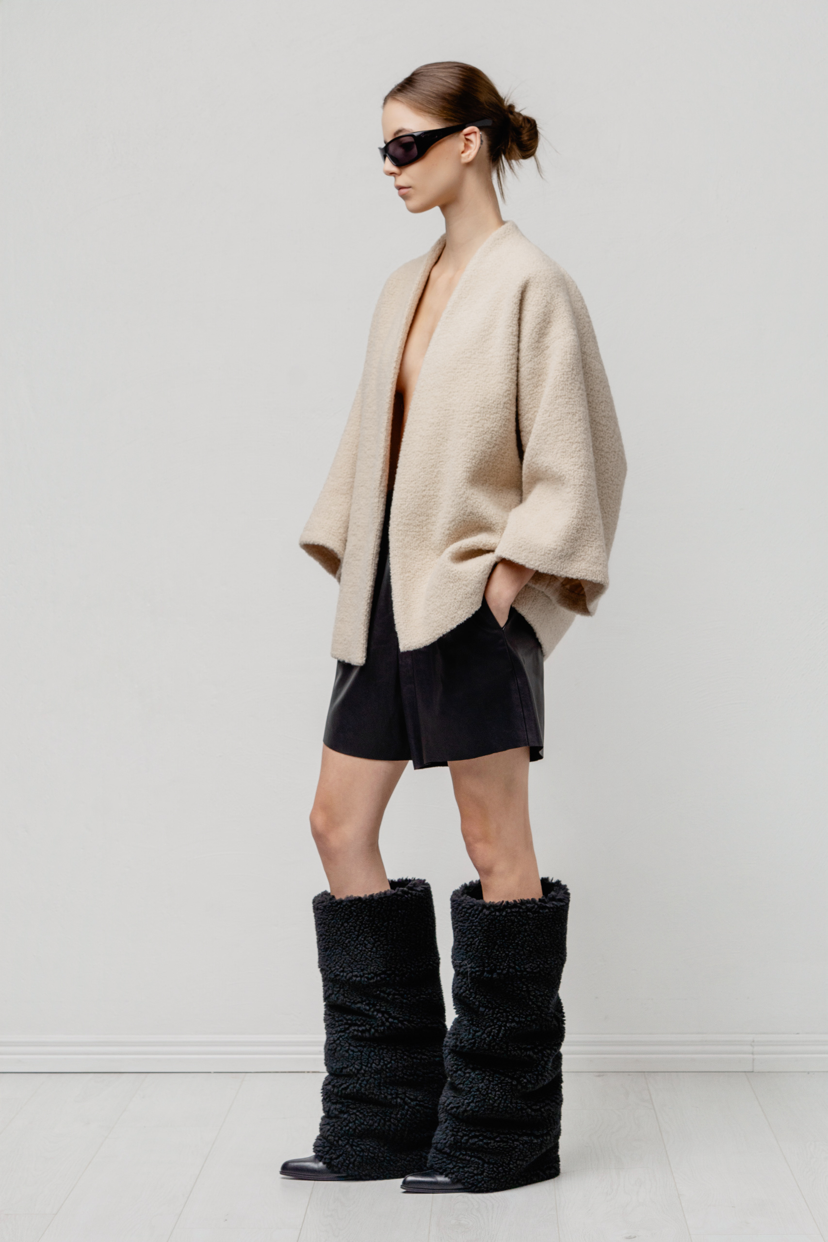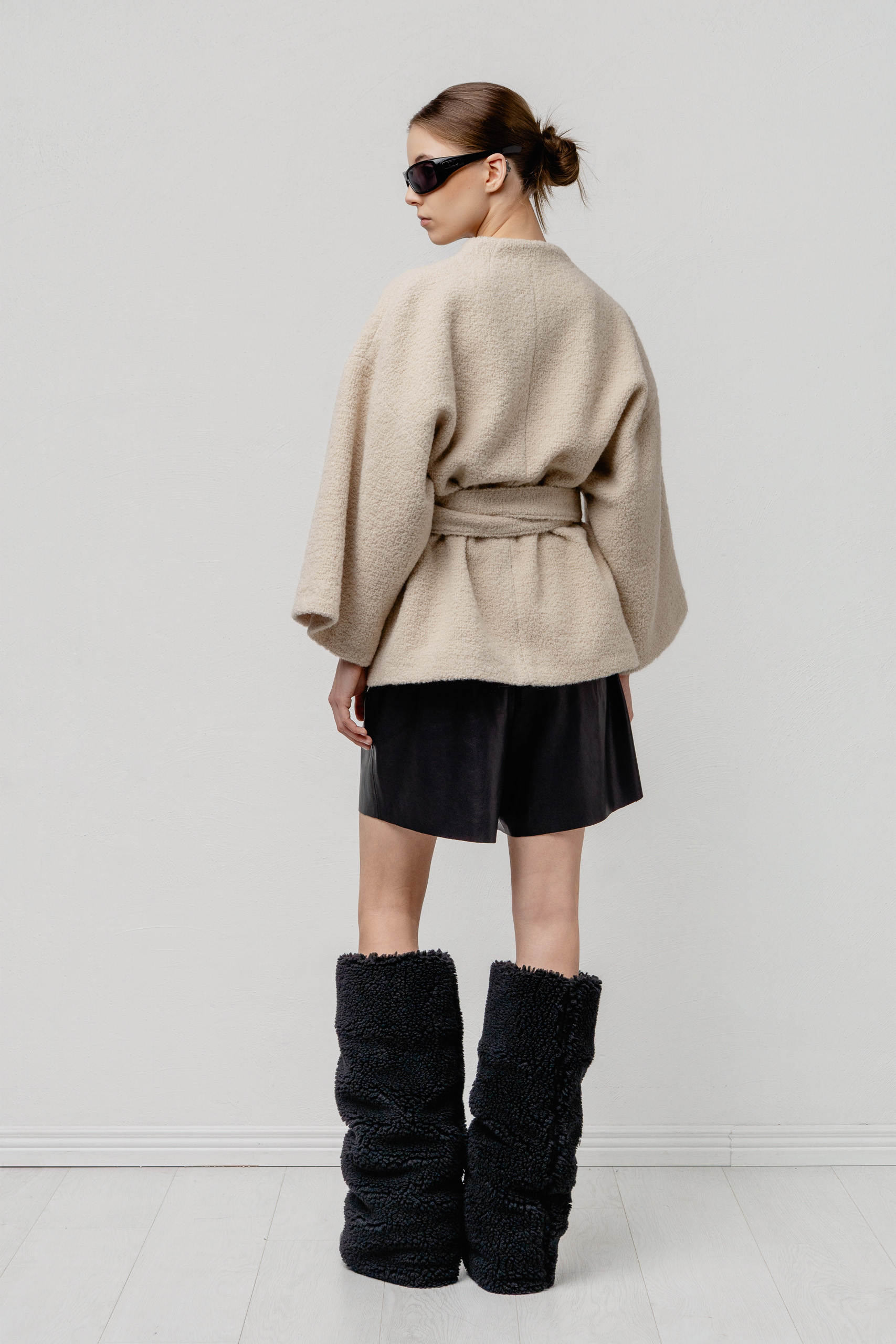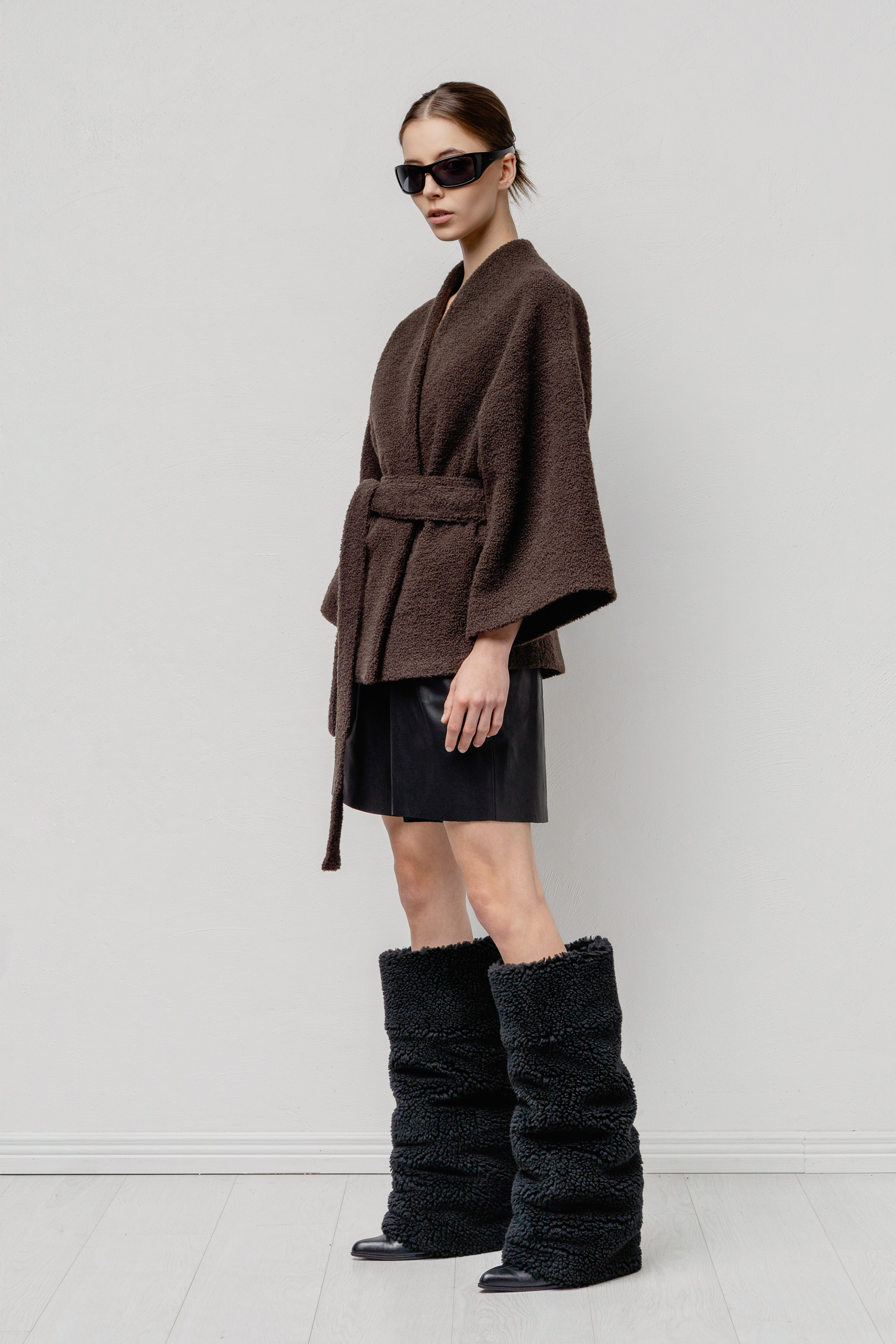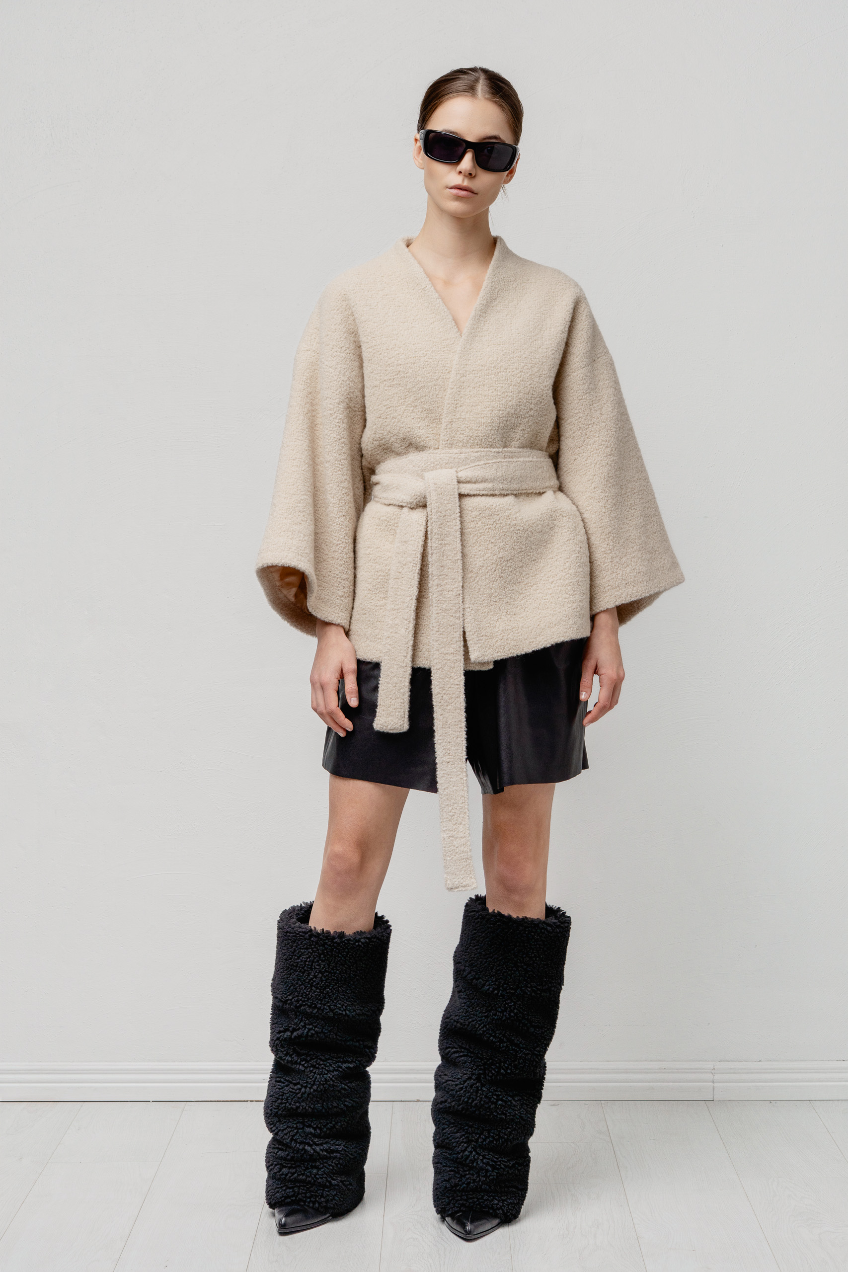 YOKO villane kimono on pehmest villasest kangast lühike jakk, millel on efektsed laiad varrukad ja kaasas pikk vöö ehk et saad kanda nii vööga kui ilma. Lühike YOKO kimono sobib kandmiseks nii pidulikult kontsadega kui igapäevaselt tenniste ja saabastega, sobib nii laiade pükste kui kitsa seelikuga.
